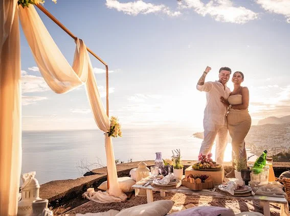 The Timeless Proposal Package in Madeira at sunset, surrounded by magical landscapes and scenery. Every moment beautifully captured with drone by one of Madeira’s most talented photographers